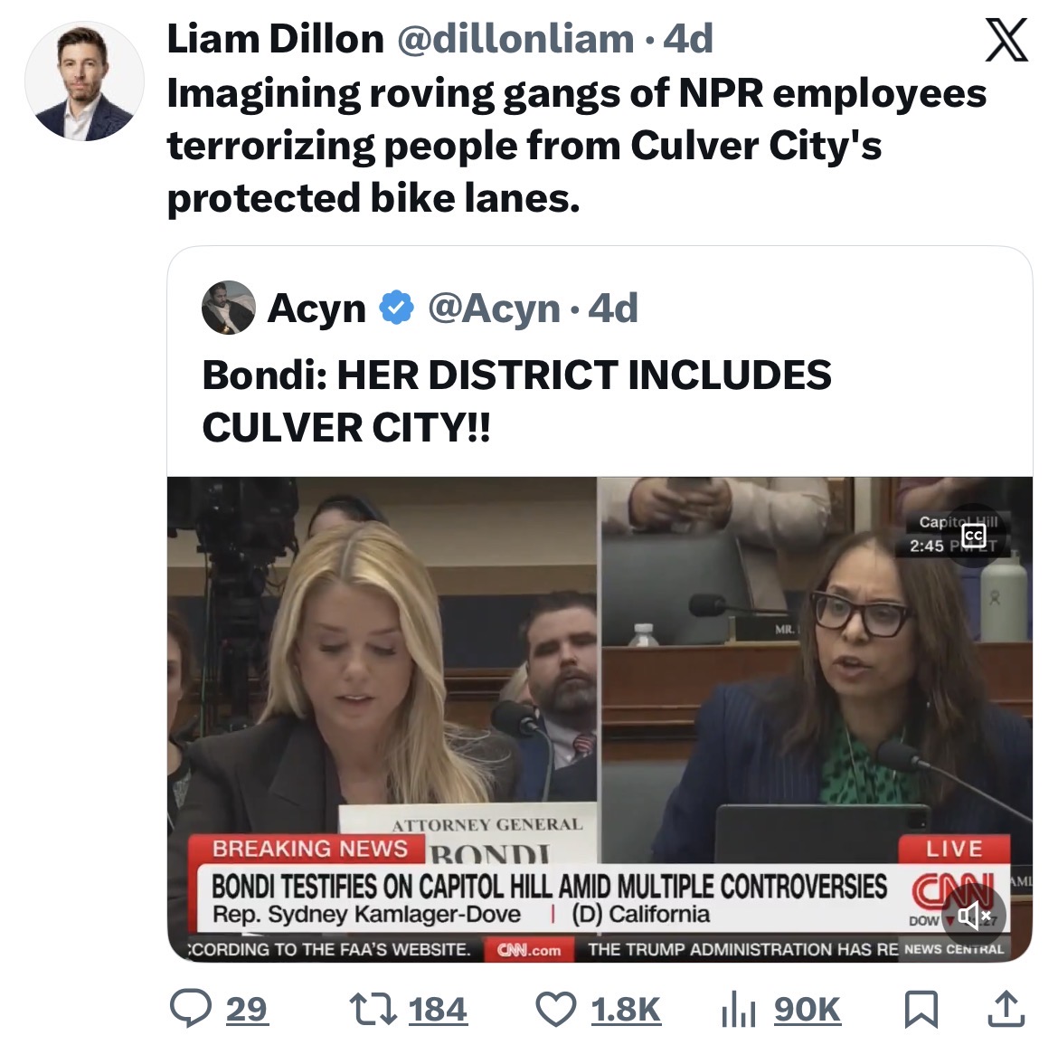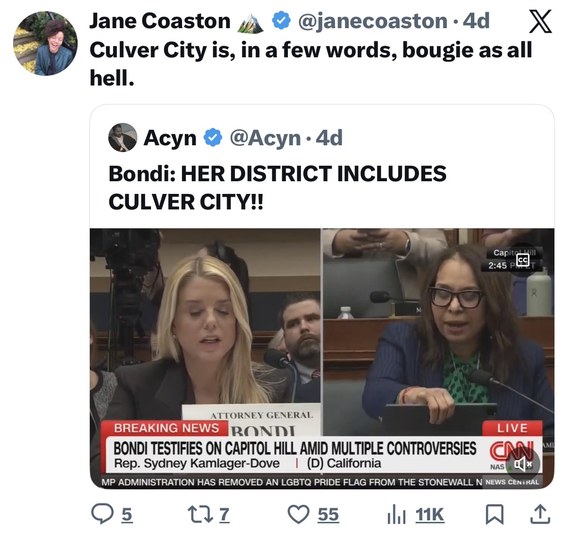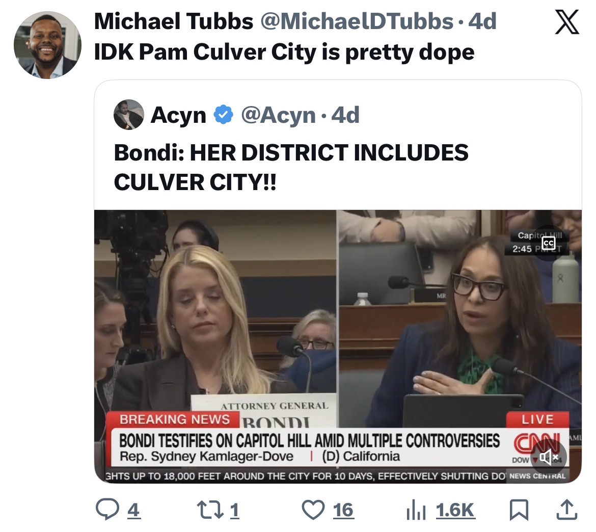 Needless to say, residents and officials were caught off guard when U.S. Attorney General Pam Bondi took an apparent jab at the city during a congressional hearing last week. It came in response to a question from Rep. Sydney Kamlager-Dove (D-Los Angeles) about the threat of far-right extremism.